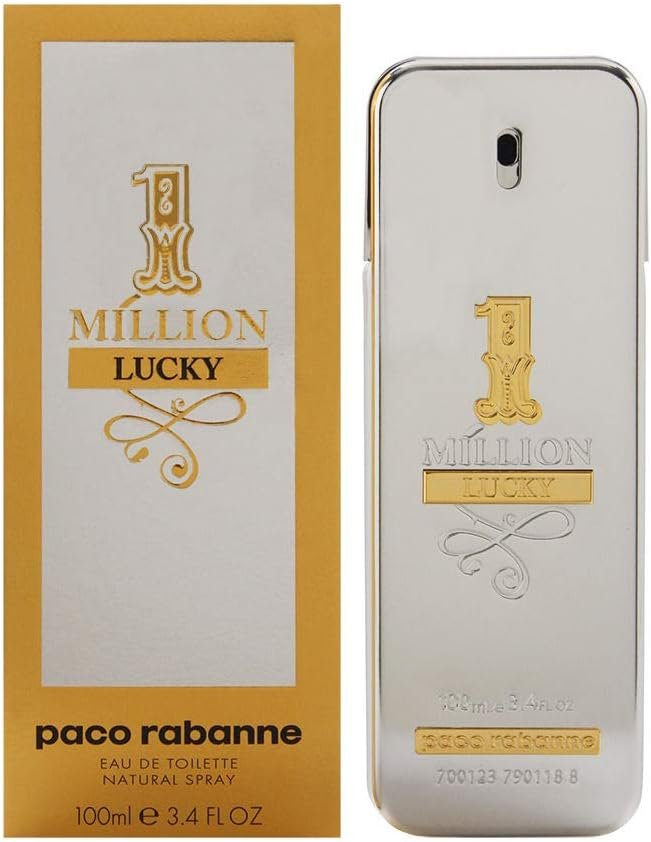 Description: One Million Lucky by Paco Rabanne is a vibrant and daring fragrance for men, blending sweet and woody notes for an unforgettable scent.